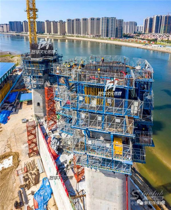 新津河大桥主塔又长高了