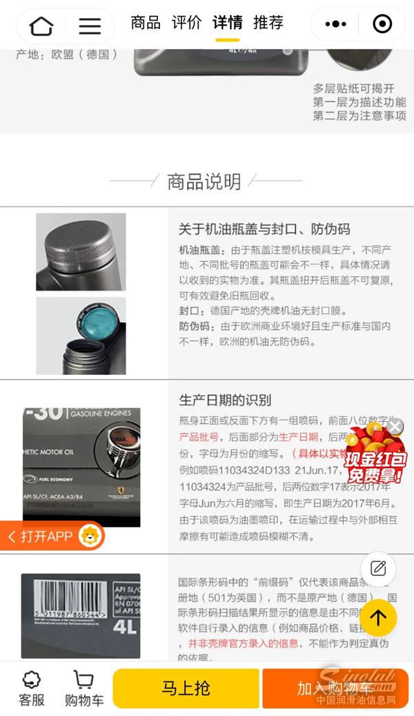 记者致电苏宁易购,对方回复:德国原装进口的机油就是这样,如果客户有疑问,可以扫描机油桶上的二维码,进入壳牌的官方网站查询。