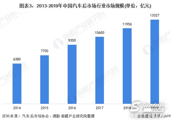有关数据显示,2019年中国汽车后市场规模已达13327亿元,甚至预计2020年中国汽车后市场规模将上升至17004亿元。