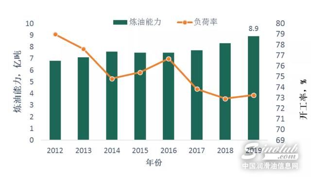 国内炼油能力过剩。从2017年开始,我国炼油能力重回增长轨道。2019年我国炼油能力已上升至8.9亿吨/年,是仅次于美国的世界第二大炼油国,占全球总产能的18%,而国内炼厂开工率已下滑至73%。预计2020年我国炼油能力过剩至少2亿吨,目前还有浙江石化、盛虹石化等多个千万吨级炼厂项目在建,未来国内炼油能力的过剩形势将更加严峻。