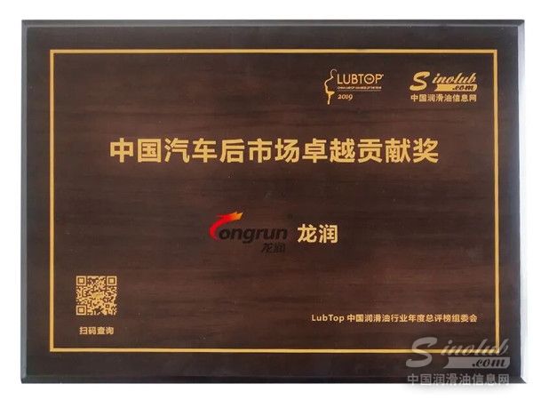 龙润荣获“LubTop2019中国汽车后市场卓越贡献奖”!