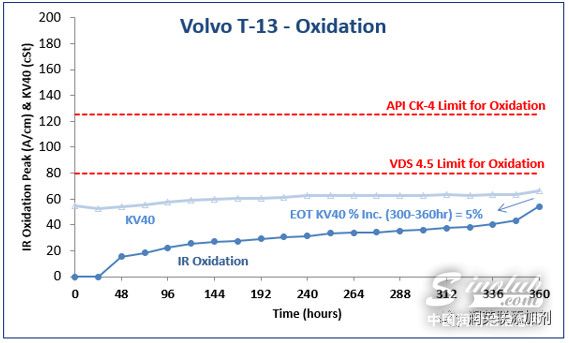 最新的API 规格为了保证润滑油更好的抗氧化性能来满足最新的发动机设计,引入了新的台架试验Volvo T13。Infineum D3337产品具有超出规格要求的抗氧化性表现。最新的API 规格为了保证润滑油更好的抗氧化性能来满足最新的发动机设计,引入了新的台架试验Volvo T13。Infineum D3337产品具有超出规格要求的抗氧化性表现。