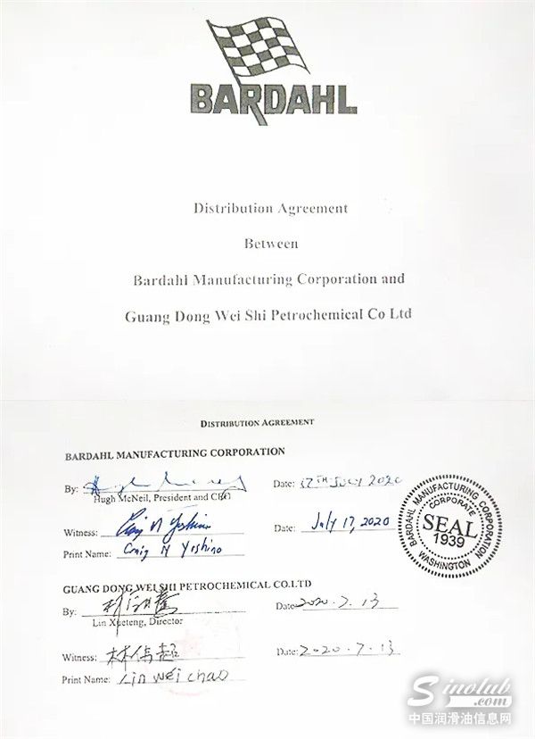 2020年当疫情在全球大面积爆发,多地经济环境遭受严重影响,各行各业的发展受到重大冲击,低迷的行情下,如何坚守住市场成为全球企业共同面对的难题。面对国内外市场的艰巨挑战,广东卫士坚定市场运营信心,经过多番与美国佰达尔(BARDAHL)的合作洽谈,于7月中旬成功取得“BARDAHL”品牌中国地区独家经营权,为卫士公司拉开2020年下半年销售工作新篇章带来充足的信心与力量。