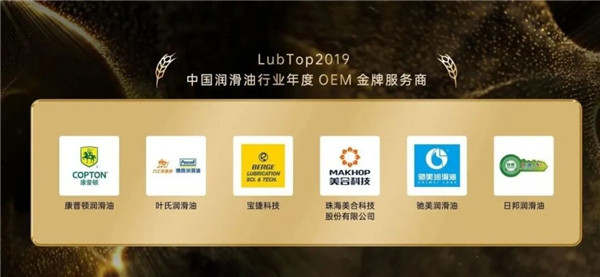 美合科技再次获得“LubTop2019中国润滑油行业年度OEM金牌服务商”殊荣