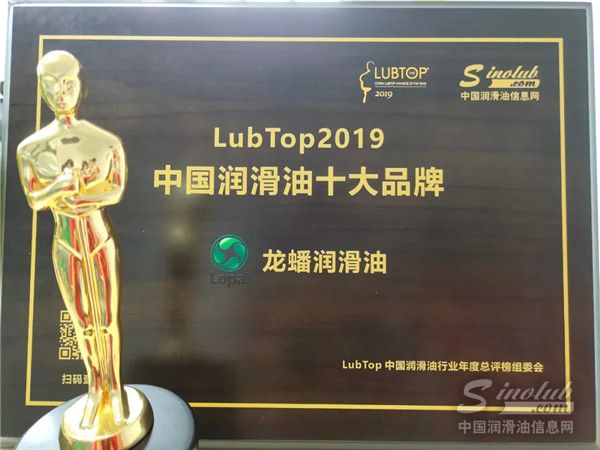龙蟠润滑油再次荣获LubTop2019中国润滑油十大品牌