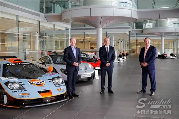从左至右依次为:迈凯伦汽车CEO 傅伦毅(Mike Flewitt)、GULF海湾石油CEO 迈克·琼斯(Mike Jones)、迈凯伦竞速CEO 扎克·布朗(Zak Brown)
