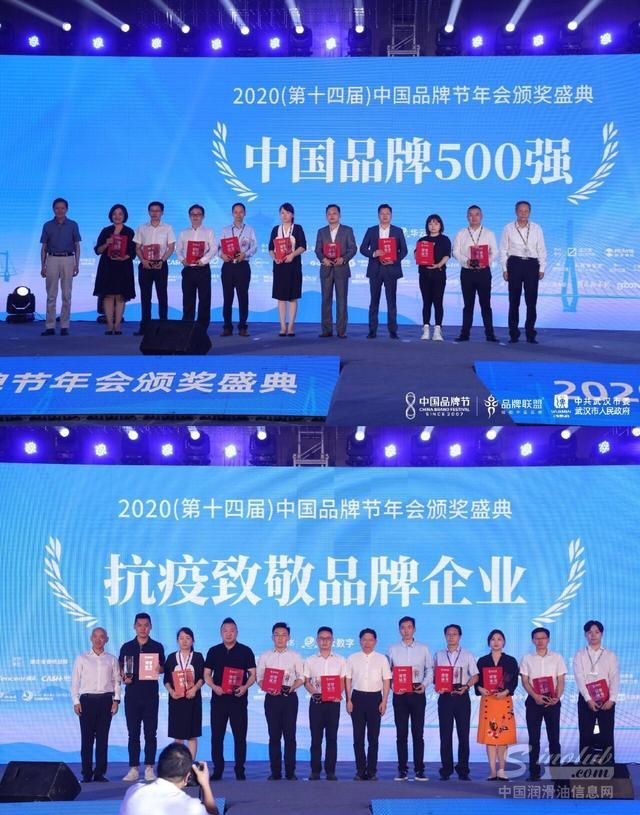 2020年8月8日,第十四届中国品牌节在武汉成功举办,中国石化长城润滑油荣获"2020中国品牌榜500强"、"战'疫'品牌企业奖"两项荣誉,与众多知名企业一起,成为代表中国品牌形象的典范。