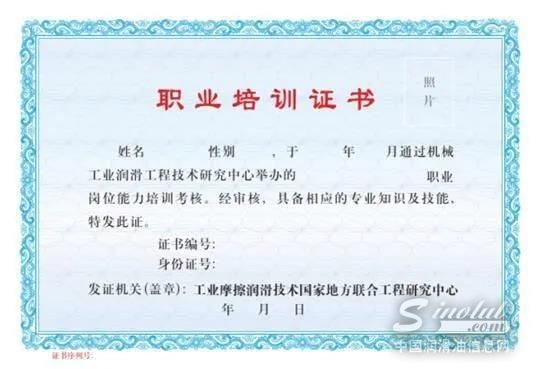 为深入规范落实设备润滑管理资格准入制度和提高大型设备运转效率,针对我国目前“设备润滑领域专业”人才短缺的状况,广研检测联合国际机器润滑理事会(ICML)、工业摩擦润滑技术国家地方联合工程研究中心、美国 NORIA 润滑管理咨询公司、广州机械科学研究院有限公司联合、倾力打造,名师主导、现代设备管理前沿话题、设备故障诊断分析案例于一身的课程项目,培训由美国国际机器润滑理事会统一提供教材,统一测评,学员参加并通过考核可获得美国国际机器润滑理事会颁发的ICML认证证书。