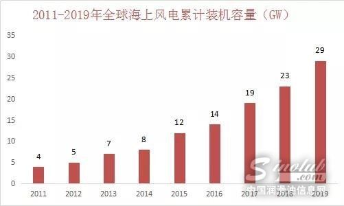 作为风电的重要组成部分,海上风电在技术和政策的支持下快速发展,并大力加快全球风电开发进程。因海上风力资源丰富且风源稳定,将风电场从陆地向海上发展在全球已经成为一种新趋势。海上风电的优势主要是风速较陆上更大,风垂直切变更小,湍流强度小,有稳定的信号主导方向,年利用小时长。此外,海上风电不占用土地资源,且接近沿海用电负荷中心,就地消纳避免了远距离输电造成的资源浪费。据统计,2019年全球海上风电新增装机创历史新高,首次突破6GW。