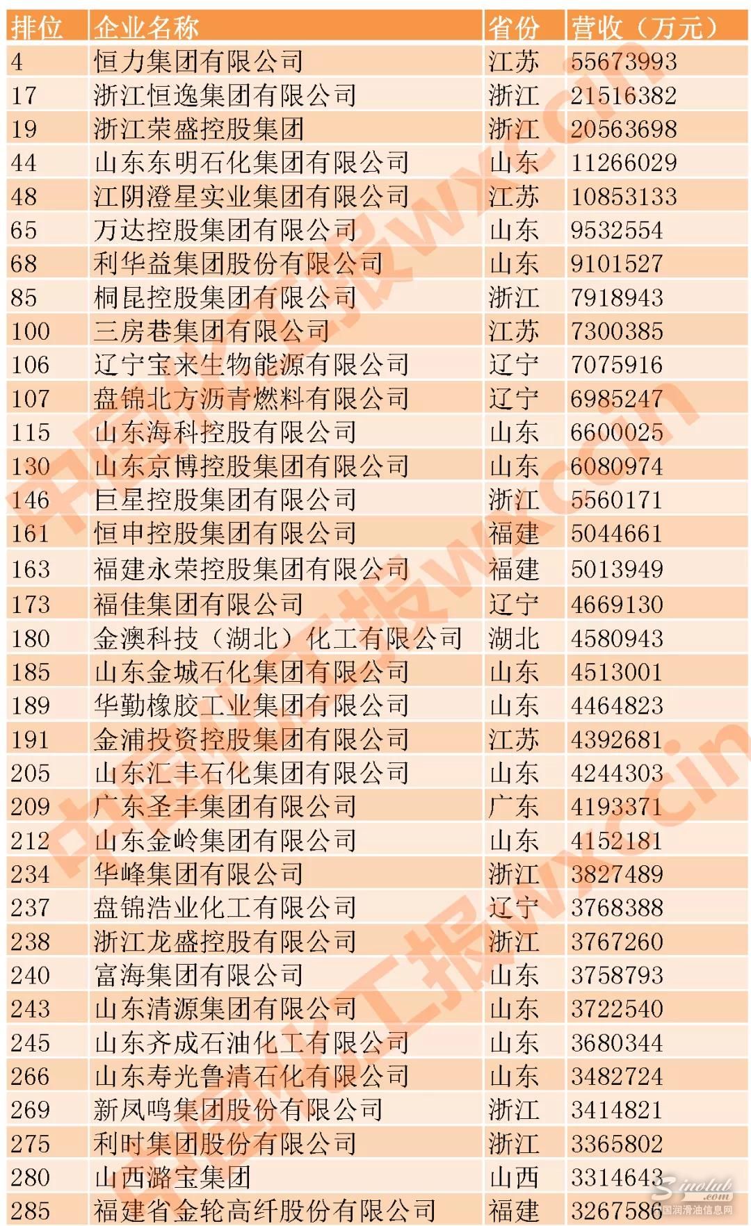 首进前5!55家化工企业上榜民营500强!5家收入超千亿元 (名单)