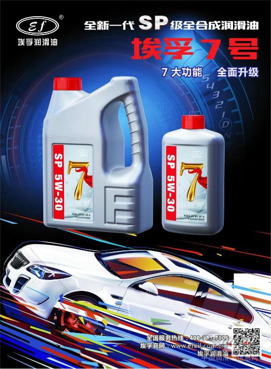 面对不断更新迭代的产品标准和全面到来的“国六时代”,为帮助发动机更稳定地应对低速早燃、抗氧化性、抗磨损性,9月28日,润滑油行业优秀企业广东埃孚合成润滑油脂有限公司精心打造的SP级全合成润滑油——埃孚7号高端全合成汽油机油系列产品荣耀上市,这是埃孚针对API SP和国六标准,率先推出的顶级高端重磅产品。