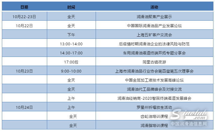 疫情常态化管控下,中国经济社会发展延续改善势头,主要指标呈现积极变化,复工复产成效显著。在这样的市场环境及机遇下,10月22—24日苏州·同里湖度假村将举办由润滑油聚焦主办的润滑油产业大会,以专业角度分享、讨论行业现状,复苏及洗牌阶段如何适应市场,以及困难之下所蕴藏的机遇。回顾近一年的行业动态,预测润滑油行业的未来发展趋势。