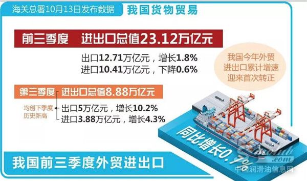 数据显示,外贸进出口正在逐季回稳,累计增速转负为正。今年前两季度,我国进出口增速分别为-6.5%、-0.2%,在第三季度却迎来了强势复苏,进出口8.88万亿元,同比增长7.5%,其中出口5万亿元,增长10.2%。