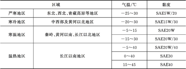 ①冬用油(W系列)包括0W、5W、10W、15W、20W和25W,以最大低温黏度、最大低温泵送温度下的黏度和100℃时的最小运动黏度划分。