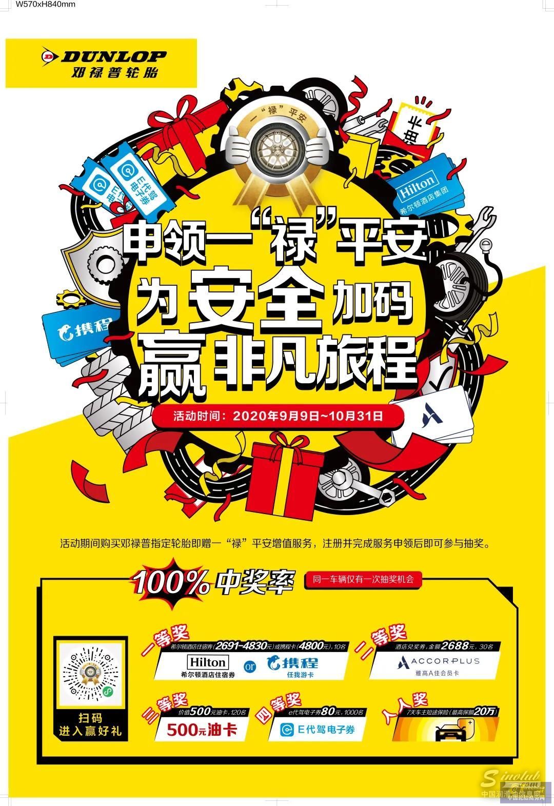 一“禄”平安是邓禄普轮胎为消费者提供的专项产品增值保障服务。消费者在邓禄普轮胎授权门店以及“dunlop邓禄普轮胎旗舰店”(天猫旗舰店)购买指定邓禄普轮胎并完成服务申领后的365天内,如遇因非意外事故导致的轮胎爆胎、鼓包问题,邓禄普轮胎可为其提供免费换新服务。本次,一“禄”平安增值服务推出“为安全加码 赢非凡旅程”的抽奖活动,为广大消费者准备了超级丰厚的旅行福利。奖品包括最高价值4830元的希尔顿酒店住宿券或价值4800元的携程任我游卡、价值2688元的雅高A佳会员卡,以及超级实惠的加油卡、代驾券、车主短途险等福利奖品。