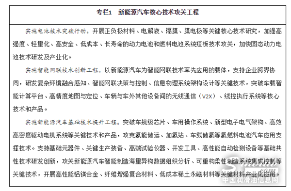 建立健全龙头企业、国家重点实验室、国家制造业创新中心联合研发攻关机制,聚焦核心工艺、专用材料、关键零部件、制造装备等短板弱项,从不同技术路径积极探索,提高关键共性技术供给能力。引导汽车、能源、交通、信息通信等跨领域合作,建立面向未来出行的新能源汽车与智慧能源、智能交通融合创新平台,联合攻关基础交叉关键技术,提升新能源汽车及关联产业融合创新能力。