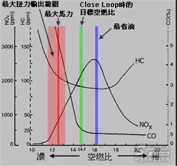 “缺氧燃烧”状态下,因为缺乏氧气,因此汽油就无法被彻底烧干净,最终就会存在燃烧不充分的现象;反过来如果是“过氧燃烧”,因为氧气过量,所以尾气里的氮氧化物会增多,也对环境不利。因此汽车发动机一但热机结束,水温达到工作正常温度后,电脑会强行将空燃比稳定在1.47~14.8之间,以此来保证尾气的最干净,同时三元催化器工作状态最佳。