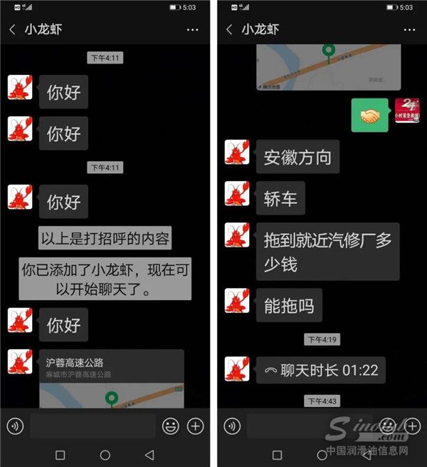 在添加了对方名为“123”的微信号后,张师傅将所在的位置发给了对方。不到两分钟,随同的救援公司的工作人员王师傅便接到了一个来自青海黄南州“188”开头的移动电话,告之在沪蓉高速湖北麻城段有一小车抛锚,需要救援: