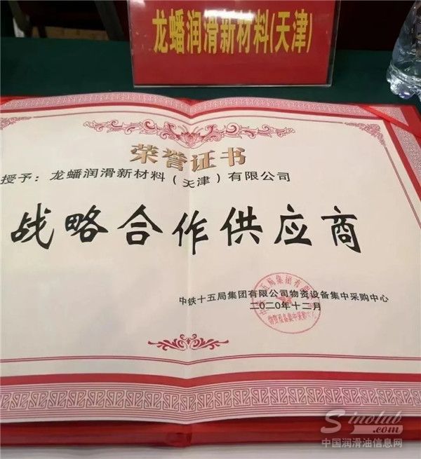 在本次表彰大会中,龙蟠科技旗下全资子公司龙蟠润滑新材料(天津)有限公司凭借出色的产品质量和完善的服务体系,从众多供应商中脱颖而出,被授予中铁十五局集团“战略合作供应商”荣誉称号,为双方在接下来的业务合作奠定了良好的信任基础。