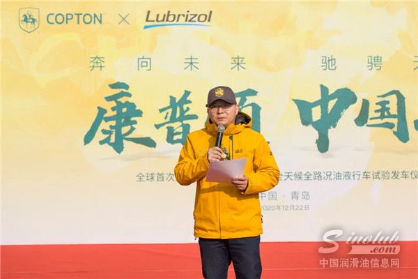 康普顿执行总裁杨奇峰先生与路博润添加剂亚太区销售与市场高级总监胡锷共同宣布行车试验正式启程,两台试验车陆续启动驶出康普顿黄岛工业园。