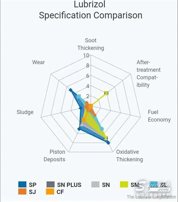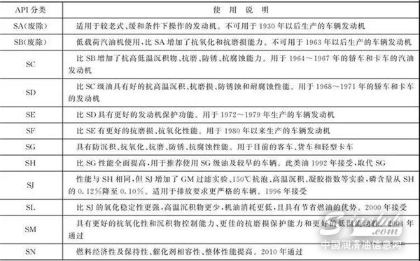 美国,汽油机油从1981年至1991年10年间从SF升级到SG,发动机功率提高、体积变小、热负荷增大,进而提高机油的抗氧性、清净分散性,换油周期延长,减少了废油污染。
