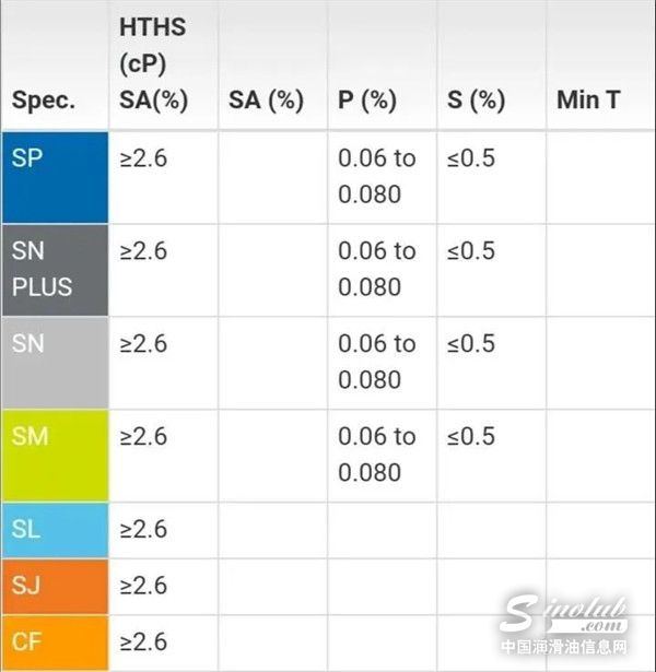 ③2000年为了进一步降低排放,汽车工业要求进一步降低磷含量,但由于相关的试验标准尚未制定,因此SL/CG-3规格磷含量仍在0.1%的水平;