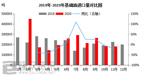 【876】 国内基础油产量再创新高,2020年达876万吨,同比增长15%。主因国内新增4家炼厂于本年度投产放量。