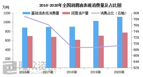 【69%】 2020年的润滑油产量在780万吨左右,基础油在润滑油领域的消费占比降至69%,剩余部分白油、橡胶油进入化纤、纺织、锂电池隔膜、钻井液、橡胶制品、轮胎等行业。