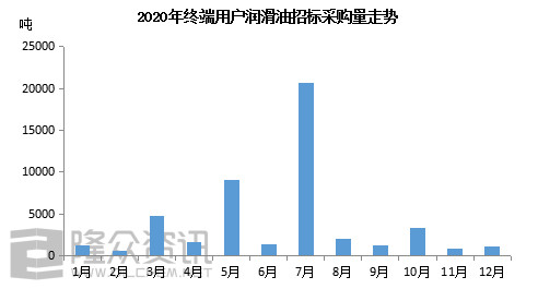 【47994吨】2020年终端用户润滑油招标采购量47994吨,大致呈“一高一高一低”特点,整个下半年终端需求平平。