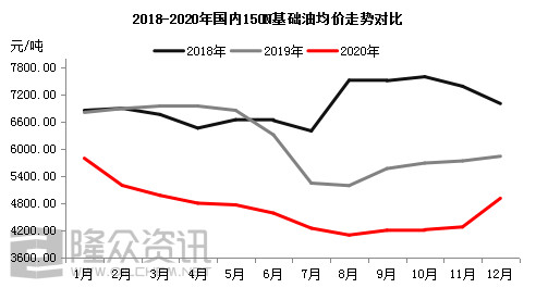 【3870】2020年国内150N基础油均价跌至10年以来最低价到3870元/吨,12月完成最快的转身,涨幅高达千元。