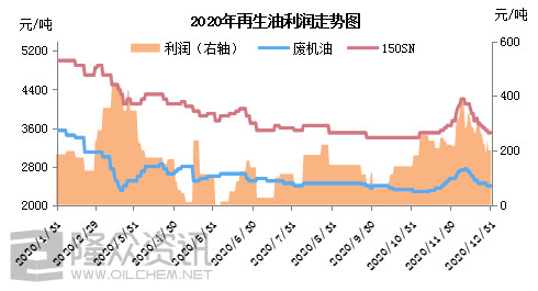 【378元/吨】 2020年再生油利润值最高达378元/吨,均值170元/吨,同比去年高值下滑16.5%。