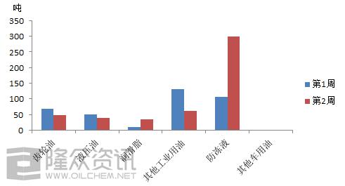 本周防冻液询单量300.2吨、其他工业用油询单量61.1吨、齿轮油48.0吨、液压油37.9吨,润滑脂35.1吨、没有其他车用油的采购量。