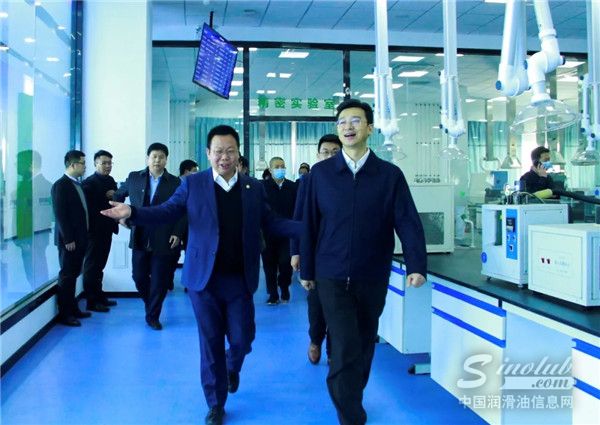 邵书记一行在石俊峰董事长、江汽集团李总等领导的陪同下,一同参观了龙蟠科技研究院检测评定平台。在参观过程中,石俊峰董事长介绍到,龙蟠科技研究院检测评定平台代表着龙蟠科技的创新以及成果转化的权威团队,在评定设备方面,经过不断的引进、创新,实验室采用LIMS软件进行系统管理,能够高效的完成实验数据和信息的收集、分析、报告和管理。对此,邵书记对龙蟠科技的研发实力及坚持研发驱动的战略给予了充分肯定。