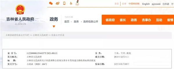 吉林省将在2021年1月10日起,将按照4类车1.57元/公里,5类车1.72元/公里的收费标准对4类车和5类车进行收费。2类车和6类车的优惠政策,也将在2021年2月15日到期后继续执行,并将打折后的价格固定为今后的正式收费标准。
