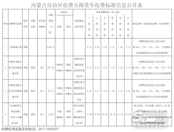 值得注意的是,准兴重载高速黄河至和林南收费站段、呼和浩特至城壕高速公路海生卜浪黄河特大桥等通行费收费标准按照文件要求执行其他标准。