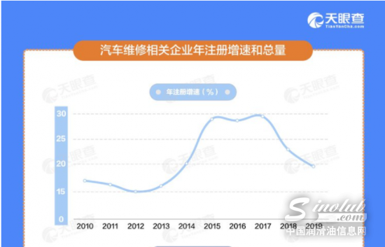 从注册增速上来看,我国汽车维修行业的企业注册年增速在过去十年中稳定在15%-25%之间,最高值出现在2017年,达25.4%。