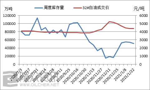 炼厂的周度库存数据与价格走势呈比较强的负相关性,相关系数在-0.779,炼厂的库存情况是影响价格波动的主要指标之一。隆众1月初针对107家企业进行了放假时间的统计,截止目前已经放假的企业占20%。下周放假的企业占23%。2月3-10号放假的企业占57%。物流行业也基本反映还有10天左右的工作时间。综合来看,上游炼厂的库存转移时间还有5-8天的时间。炼厂目前均无减产或停工计划,因此预计在春节放假前后炼厂库存会有较大幅度的增加,预计库容比会达到80%左右。