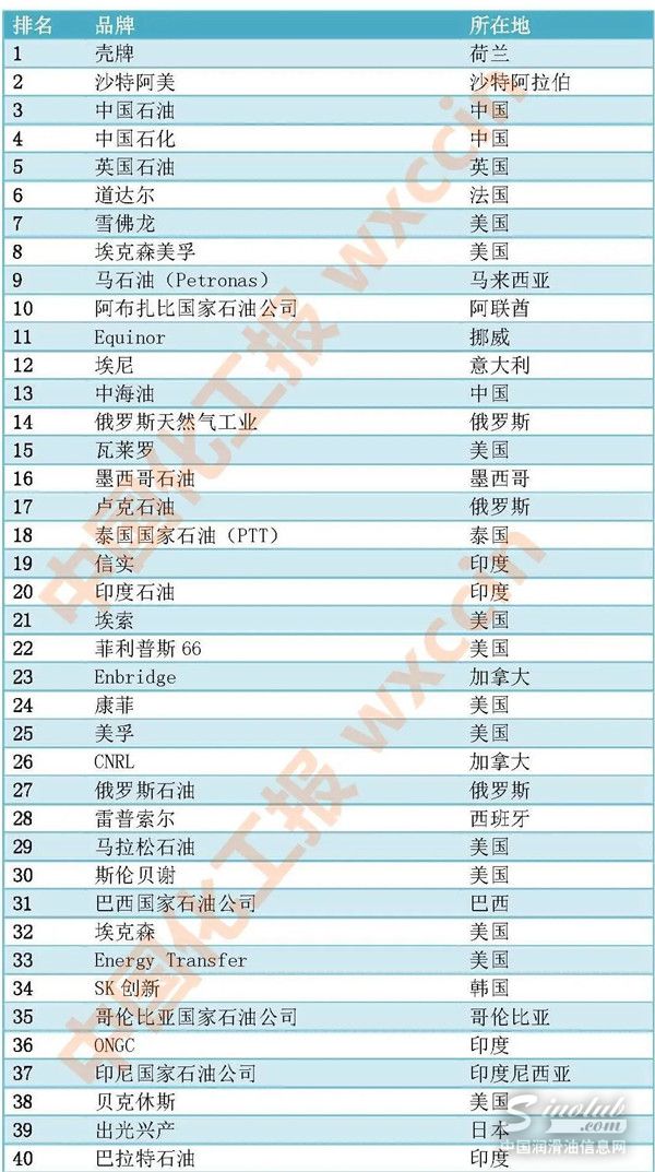 2021全球油气品牌50强:中石油第三,中石化第四(全名单)