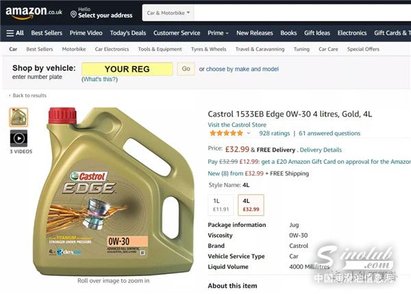 英国的机油对比国内行货的价格很便宜。这是英国亚马逊网站的零售价,约合294RMB。如果去苏宁易购上看看,虽然没有对标的粘度,欧版的价格也并不贵。至少要比行货终端价格低不少。