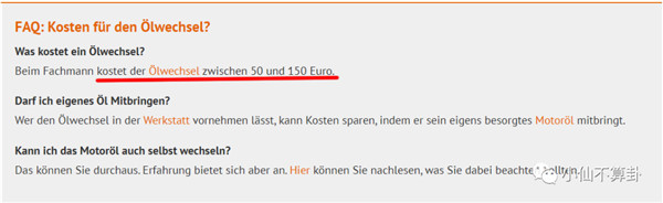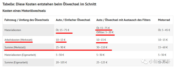 文章一开始给出了一个价格区间,在德国修理厂(非4S 店)换机油价格在50-150欧元之间(390-1170RMB, 2020年2月10日汇率)。