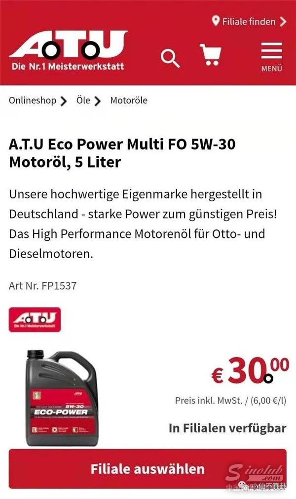 再举一个例子。前两天我和那个英国抖音机油商人掐架的时候,我查了德国一个维修连锁ATU自营品牌机油的价格和换油工时费。