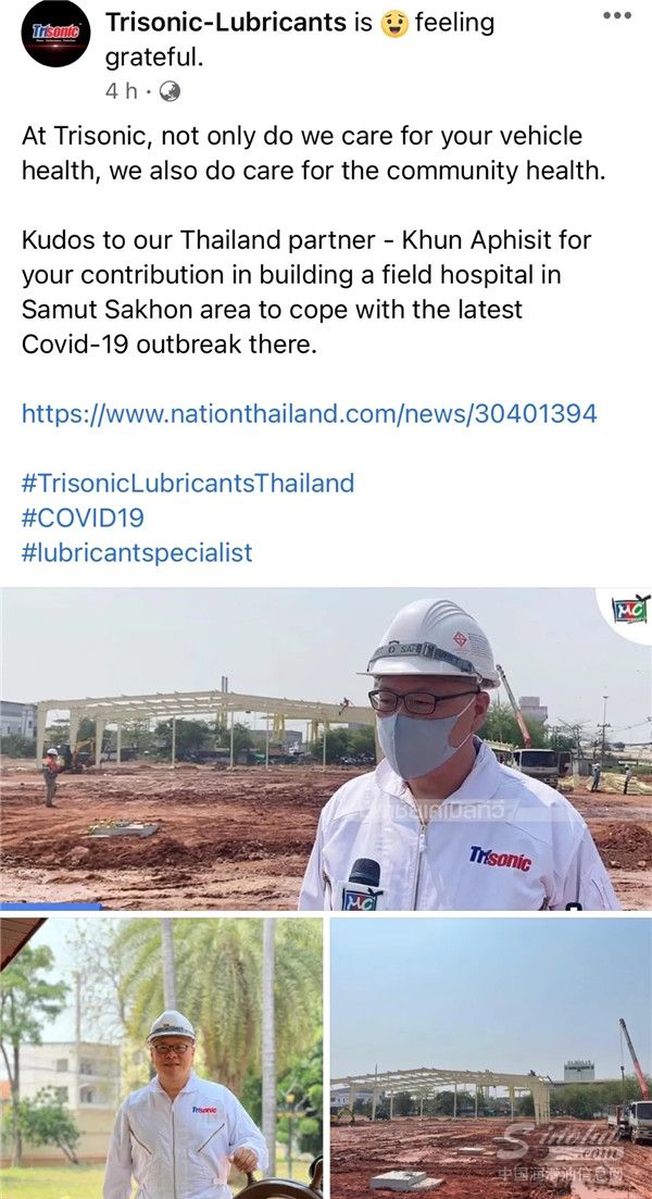 Trisonic™超速龙润滑油泰国经销商参与医院建设报道/Facebook