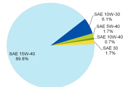 2012年北美商用车市场油品粘度使用分布:20W-50被完全淘汰
