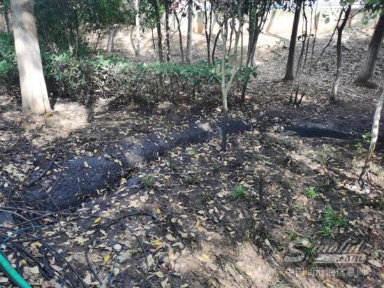 武汉东湖新技术开发区武大园路东风鸿泰汽车城旁边的绿化被废油污染