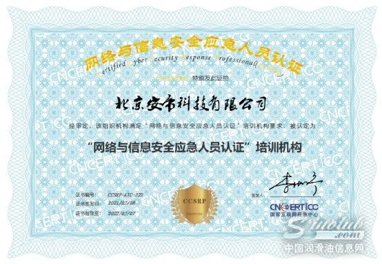 安帝科技获批“网络与信息安全应急人员认证(CCSRP)”培训机构