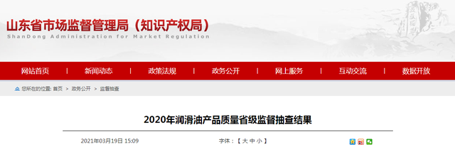 山东省市场监督管理局:4批次润滑油产品不符合相关标准的要求