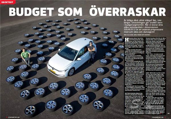 近日,瑞典杂志《ViBilägare's》在法国Montpellier 测试场进行了2021年夏季轮胎测试评比,测评规格为225/45 ZR17。本次评测选用了八个品牌,使用车辆VW Golf 1.5 TSI进行干湿地刹车、干湿地抓地、干湿地操控、纵向水飘、横向水飘、油耗、噪音、舒适性共10个分项性能评测。