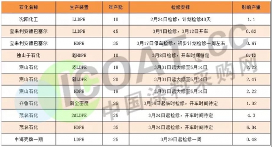 3月份国内PE主要企业检修情况汇总表(单位:万吨/年)