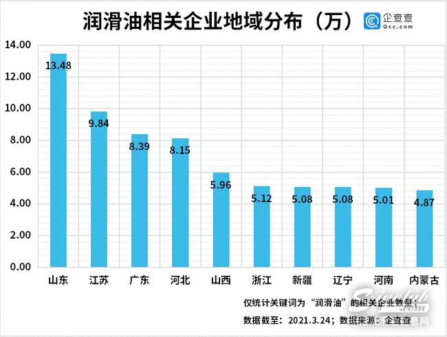 受国际原油价格持续涨价的影响,从去年12月底开始,润滑油涨价通知单陆续传来,今年3月份又一次迎来涨价大潮。企查查数据显示,目前我国共有121.2万家润滑油相关企业,山东以13.48万家企业数量位居第一,江苏、广东分列二三位,上海、北京、济南则是排名前三的城市。2020年,相关企业新注册18.41万家,同比增长12.9%。