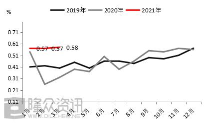 图1:2021年3月基础油市场产量、销售、库存数据变化分析